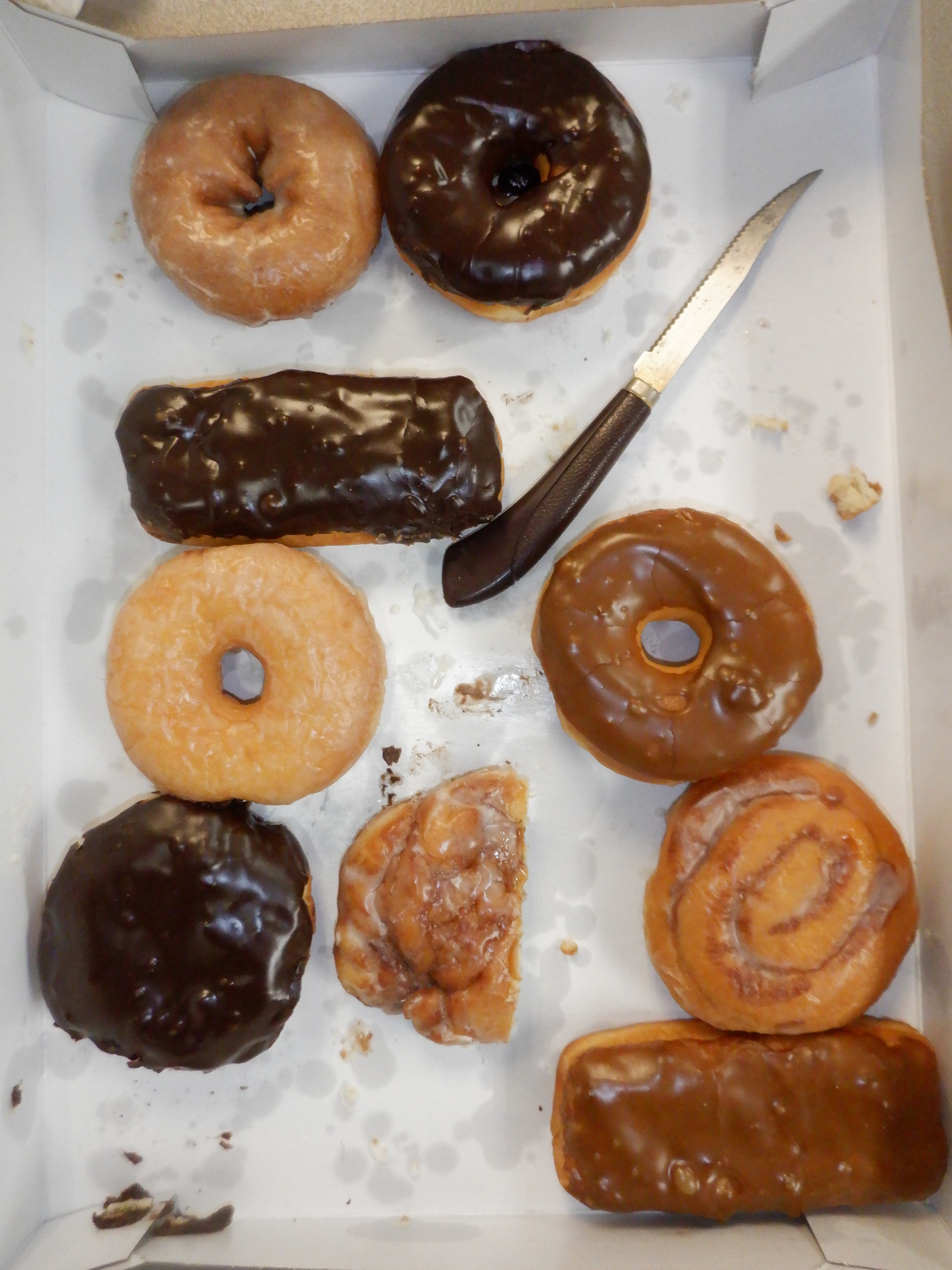 One greenkeeper enjoys a donut; another enjoys two halves of a donut. (8/30/22)